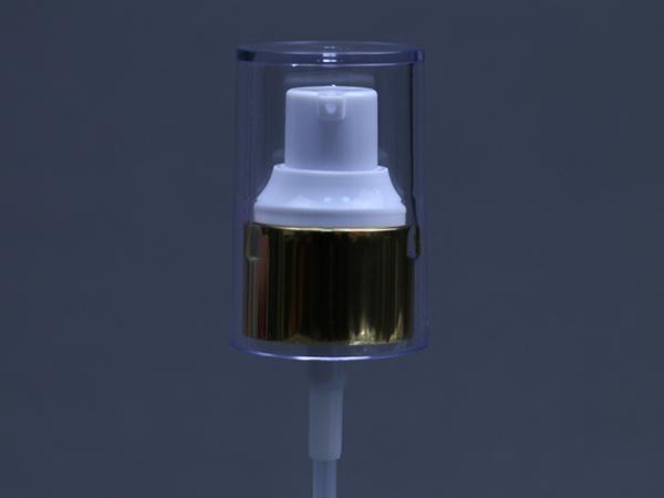 Features: gold shiny aluminum closure with half cover cream pump